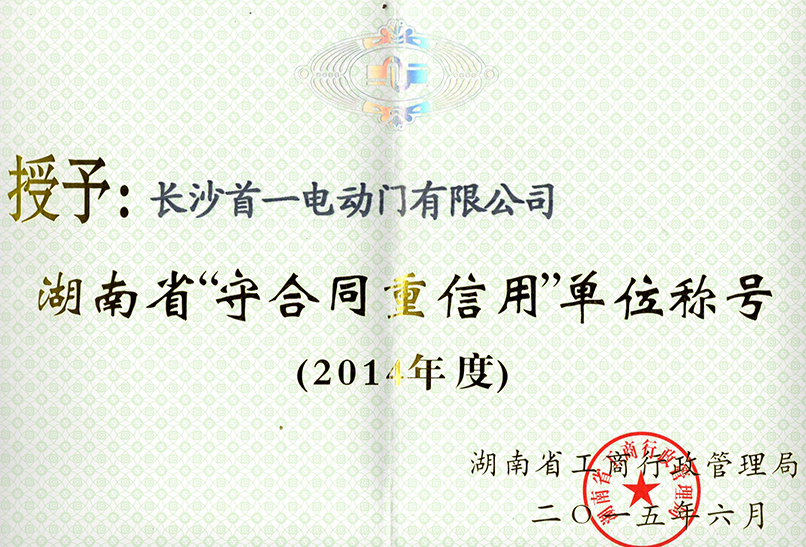 省級(jí)“守合同重信用”單位稱(chēng)號(hào)