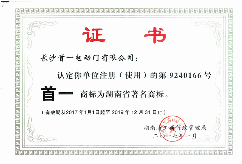 長沙首一電動門有限公司(營業執照代碼:9143010357027453X4)