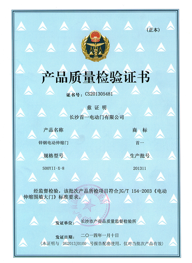 伸縮門(mén)質(zhì)量檢驗(yàn)證書(shū)