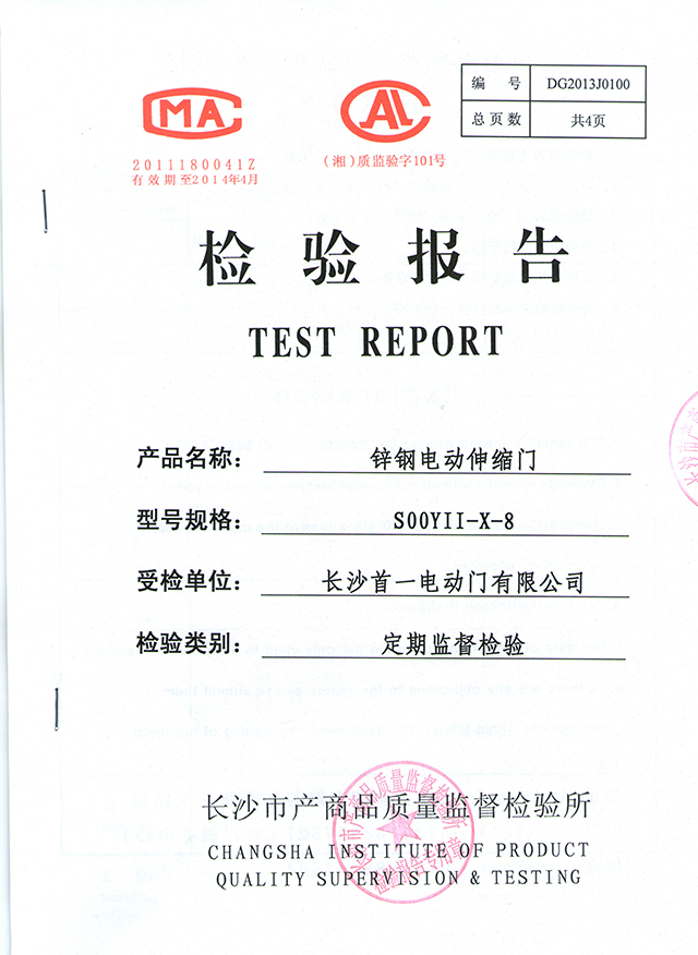 鋅鋼電動伸縮門檢驗報告x-8-1